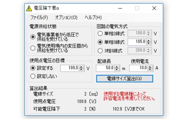 ブレーカー容量計算が楽々アプリの適用範囲