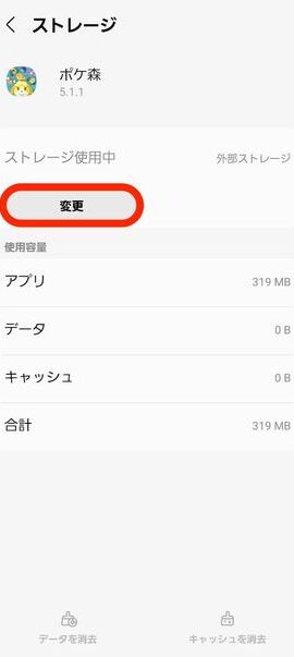 - アプリケーションの詳細画面で、「ストレージの移動」という項目にアクセスします。
