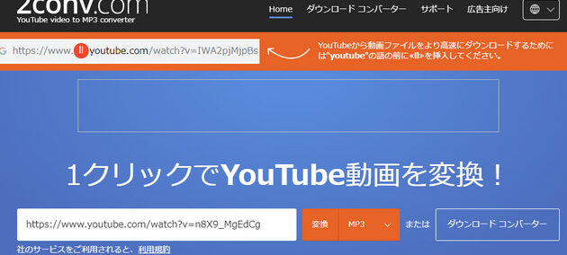 - URLを入力し、MP3に変換するボタンをクリックする