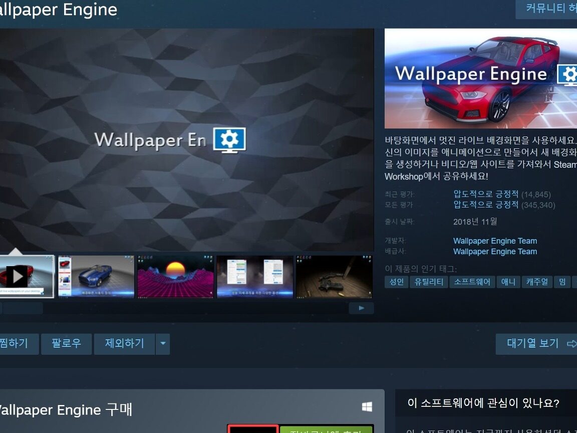 - Steamストアからインストールする方法:Steamストアにアクセスし、Wallpaper Engineを検索してインストールボタンをクリックします。