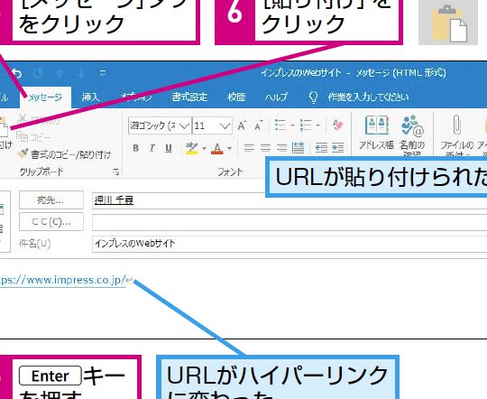 - ハイパーリンクをメールの本文に直接貼り付ける方法
