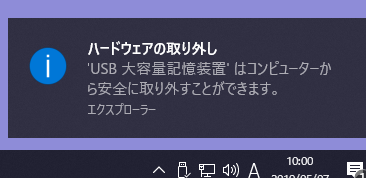 Windows10 ハードウェアの安全な取り外しの通知が表示されない