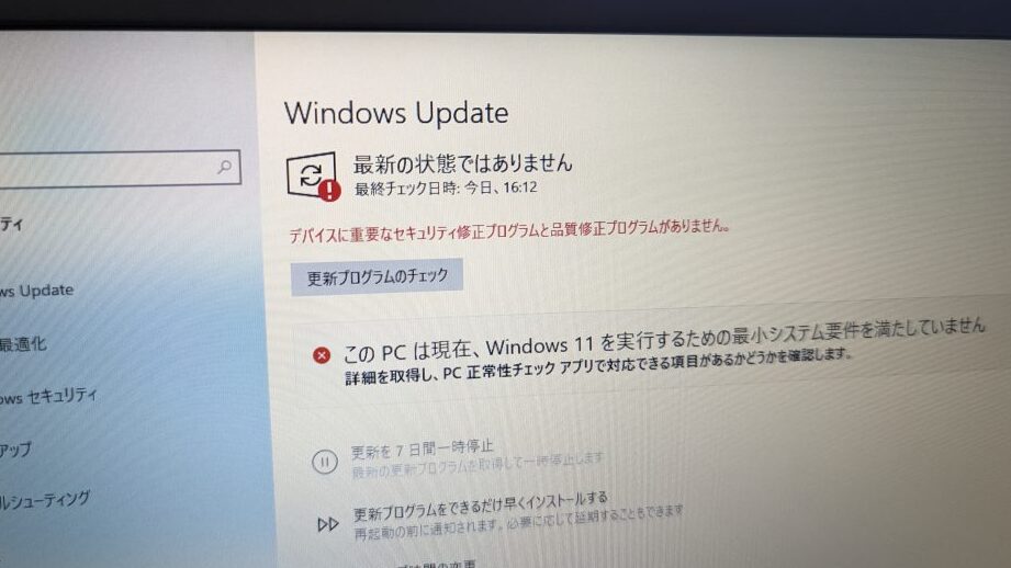 更新プログラムの問題