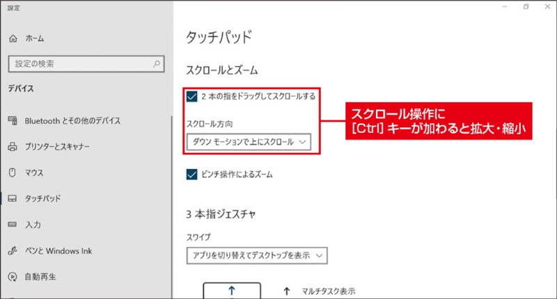 - タッチパッド:タッチパッドは、ノートパソコンに搭載されるマウスで、スクロールやズームの挙動が異なります。
