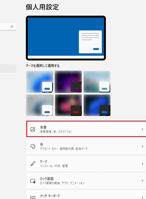 Windows11で壁紙をスライドショーに変更するには、以下の手順を踏みます。