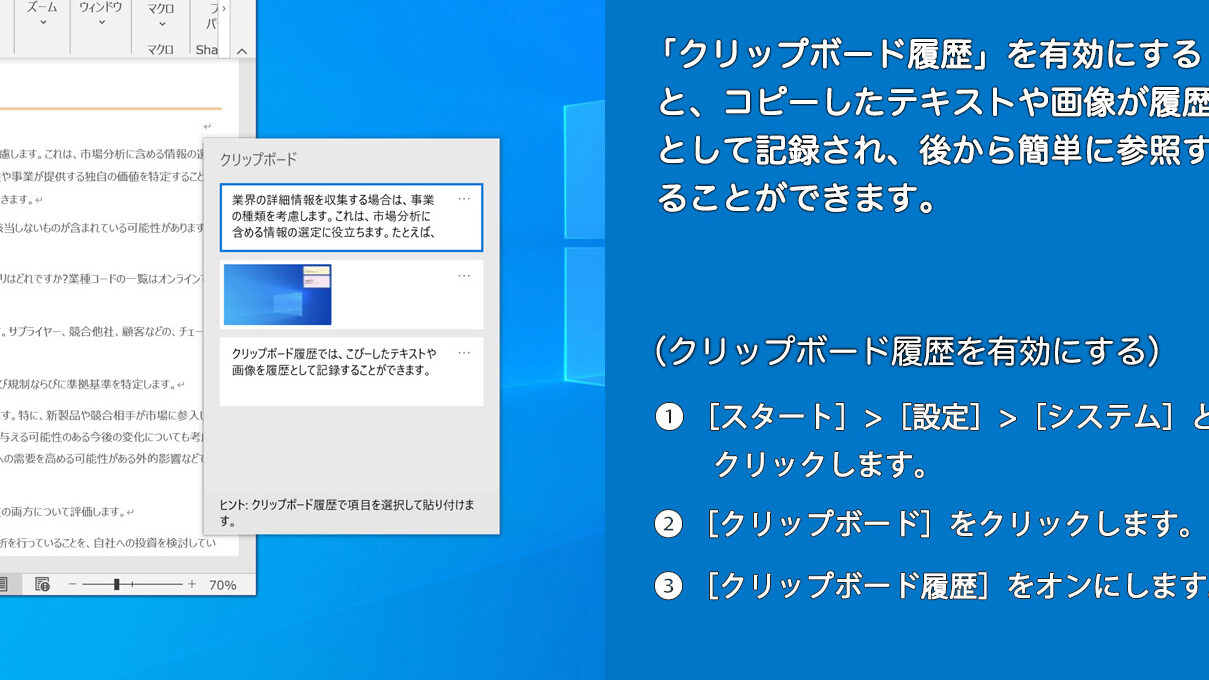 Windows10でクリップボードの履歴を表示するには?