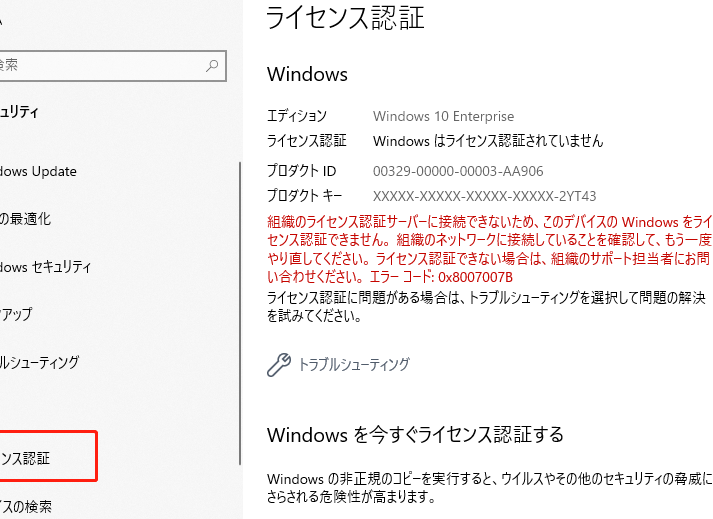 Windowsのライセンスキーが不正な場合、ライセンス認証がされません。偽造されたライセンスキーや期限切れのライセンスキーは、認証されません。