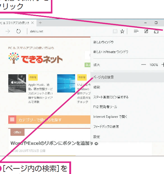 Edge ブラウザーでは、ページ内検索を行うことができます。この機能を使用することで、特定の単語やフレーズをページ内で検索することができます。