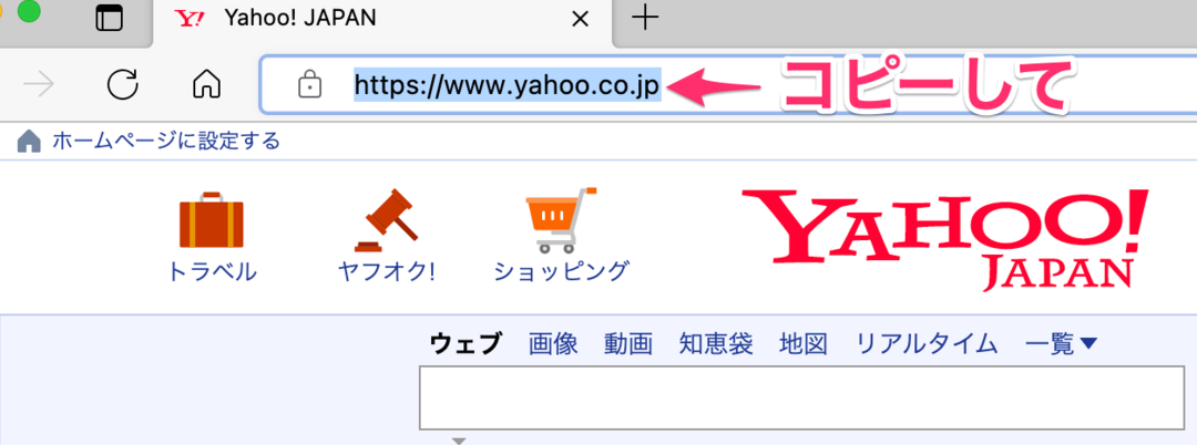 ショートカットキーを使用してURLをコピーするには、以下の手順に従います。