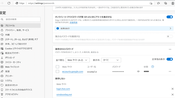 Edgeでは、パスワードの安全性を確保するために、さまざまな機能を提供しています。