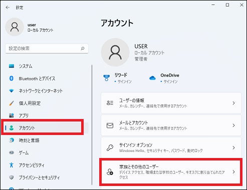 - アカウント情報を選択します。
