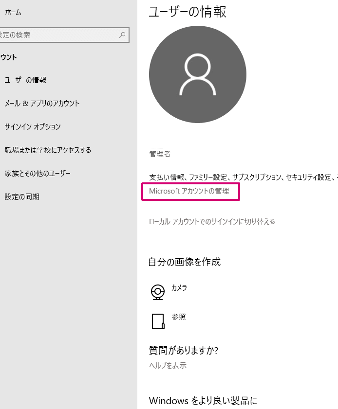 - プロフィール情報は、マイクロソフトアカウントの管理ページから変更することができます。